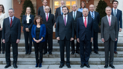 Los miembros del Gabinete de Mariano Rajoy posan ante la escalinata del edificio del Consejo de Ministros en La Moncloa. Palacio de La Moncloa, Madrid - 23/12/2011 (Prensa Moncloa)