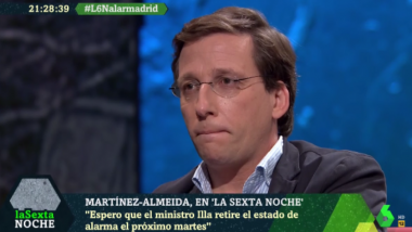 "El presidente del Gobierno no odia Madrid, pero tiene fijación con el modelo político que tenemos con la capital y quiere ganar ese espacio lo antes posible”. De esta manera se ha expresado el alcalde del Ayuntamiento de Madrid, José Luís Martínez-Almeida, en una entrevista que ha concedido a ‘laSexta Noche’, un día después de que el Ejecutivo que lidera Pedro Sánchez decretara el estado de alarma en ocho municipios de la Comunidad de Madrid y Madrid capital.