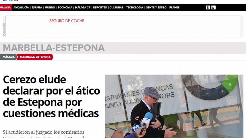 Enrique Cerezo, presidente del Atlético de Madrid y empresario del mundo del cine, productor y empresario publicitario, estaba citado este lunes en Estepona como testigo en la investigación que se lleva a cabo en el juzgado número 5 de esa población de Málaga a cuenta de la compra del ático del expresidente Ignacio González. Cerezo no compareció. Se excusó por escrito de sus abogados en el que se justificaba su ausencia en ‘cuestiones médicas’. Los periódicos locales malagueños así lo recogían.
