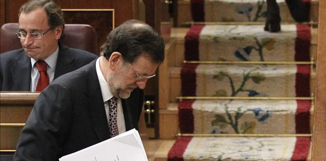Rubalcaba le ha reprochado a Rajoy que esté a la orden de Merkel y Draghi en su apuesta por la austeridad sin medidas para el crecimiento y ha insistido en “las sombrías” previsiones del FMI. El presidente del Gobierno no ha podido evitar a su llegada al Congreso esta mañana las preguntas que los periodistas le han lanzado sobre los datos de recesión. “Vamos a intentar superarlas”, se ha limitado a decir, de manera lacónica.