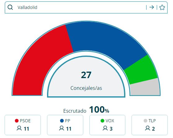 La ciudad gobernada hasta ahora por el socialista Óscar Puente puede caer de igual forma hacia el otro lado, de manera que Jesús Julio Carnero (PP) e Irene Carvajal (Vox) llegarían a los 14 concejales, por los 13 que lograría la izquierda en una hipotética unión socialista y la confluencia de la izquierda a la izquierda de ellos.