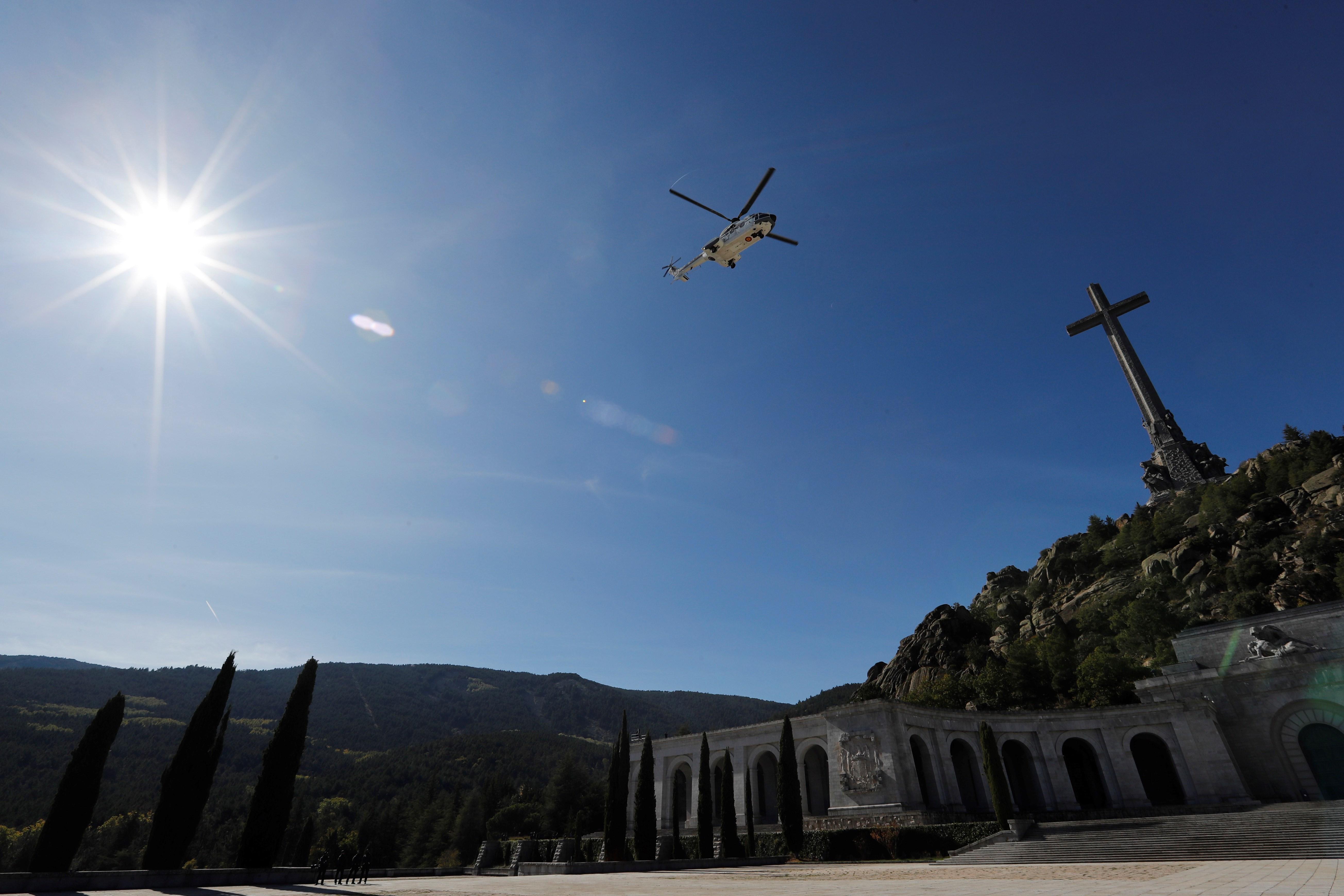 Una vez realizada la exhumación, era el momento de que el ataúd - el mismo que se usó en 1975 pese a los daños - abandonara la Basílica porteado por los familiares del dictador rumbo al helicóptero que le transportara a Mingorrubio para ser inhumado allí. En los aledaños del cementerio, aguardaron un centenar de franquistas entre los que se encontraba el teniente coronel - y golpista - Antonio Tejero, que fue jaleado por la multitud.