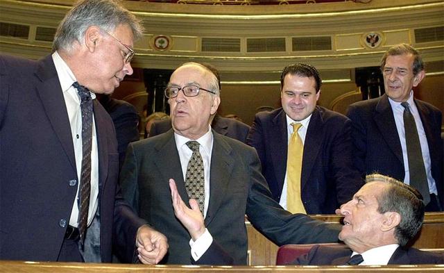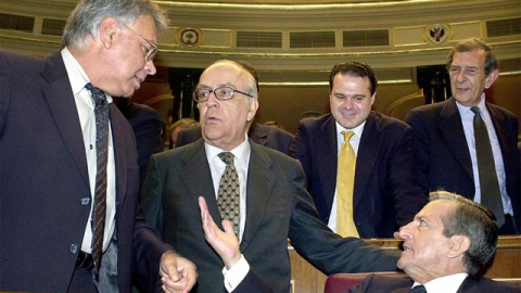 Felipe González, Leopoldo Calvo-Sotelo y Adolfo Suárez durante la Solemne Sesión conmemorativa del XXV aniversario de las elecciones de 1977 celebrada en 2002 en el Congreso de los Diputados. Efe.ARCHIVO