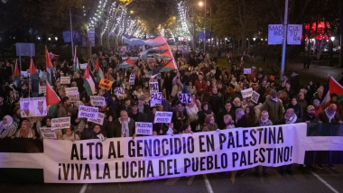 Miles de personas - 5.000 según la organización, alrededor de 4.000 según la Policía Nacional - han vuelto a llenar este sábado las calles de Madrid para exigir un alto el fuego “real” en Gaza y reclamar el fin del comercio de armas y de las relaciones bilaterales con Israel. La convocatoria coincidía con una fecha especialmente simbólica: el aniversario de la resolución de Naciones Unidas del 29 de noviembre de 1947 que dio pie a la partición de Palestina y que, más de siete décadas después, sigue marcando un conflicto que continúa abriéndose en canal ante los ojos de la comunidad internacional.