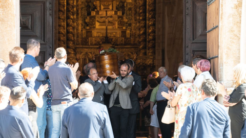 La emotiva despedida al expresidente de la Junta de Extremadura Guillermo Fernández Vara ha tenido lugar este lunes en su localidad natal, Olivenza. Un funeral lleno de emoción y aplausos recordando al socialista extremeño que falleció este domingo a los 66 años de edad, tras una larga enfermedad. Pocos minutos después de las 11:00 horas llegaba a la Iglesia de la Magdalena el féretro con los restos mortales del político, que ha sido recibido con un largo aplauso por parte de los varios cientos de personas que han acudido a la despedida.