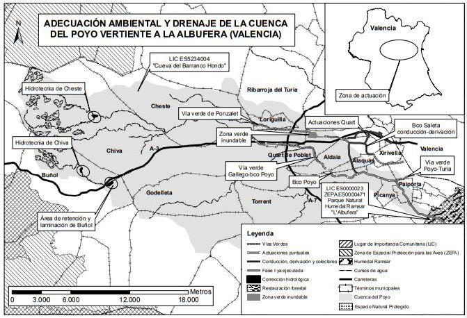 La actuación planteada se habría desarrollado en once municipios que se encuentran dentro del ámbito de afección de la cuenca del barranco del Poyo: Alaquás, Aldaia, Buñol, Chiva, Loriguilla, Paiporta, Picanya, Quart de Poblet, Ribarroja del Turia, Torrent y Xirivella. Entre los “elementos ambientales significativos” destaca uno tras lo sucedido que apunta que “el desbordamiento de estos barrancos, en situaciones de máxima avenida, ha sido un fenómeno frecuente en los últimos años, provocado por distintos factores, como la pérdida de definición de los cauces o la invasión del dominio público hidráulico con edificaciones y viales”.