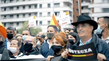El acto, en el que ha estado presente el presidente de Vox, Santiago Abascal, ha estado protegido por un amplio dispositivo de la Ertzaintza, que ha rodeado la plaza en la que se estaba celebrando la concentración para evitar que se produjeran choques entre ambos bandos.