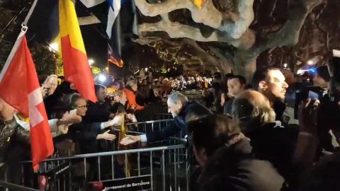 Lo ha hecho en un receso de pleno para rechazar su inhabilitación dictada por la Junta Electoral Central (JEC), acompañado de miembros de su Govern de JxCat y de otros diputados de su grupo, mientras los manifestantes ha lanzado proclamas contra el acuerdo de investidura de Pedro Sánchez, como 'Con gente en prisión no hay negociación'.
