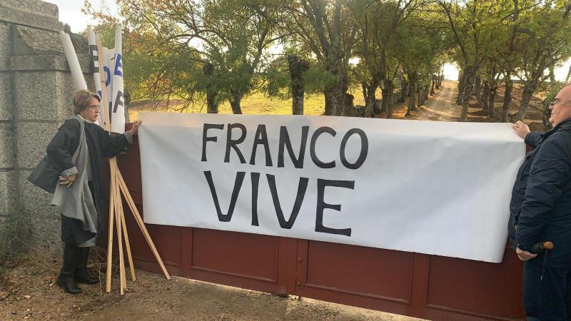 Adolfo Coloma está siendo uno de los protagonistas de la exhumación de Francisco Franco. Este nostálgico, que ha llegado acompañando a Pilar Gutiérrez, la "mujer más franquista de España", ha acudido al Valle de los Caídos en un coche empapelado con fotos y proclamas contra el Frente Popular y los crímenes "de la Checa". Dentro de ese coche, ha puesto a todo volumen El Novio de la Muerte, el himno de la Legión.