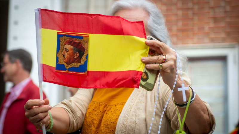 Tal y como era de esperar, la ultraderecha no ha tenido en cuenta la jornada de reflexión antes de las elecciones europeas y se ha reunido para rezar en la calle Ferraz con simbología franquista, a escasos metros de la sede del PSOE y epicentro de las violentas jornadas de Noviembre Nacional.