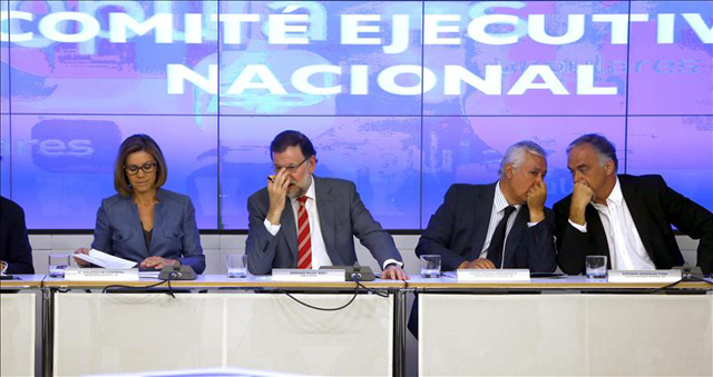 [[{"type":"media","view_mode":"media_large","fid":"24826","attributes":{"class":"media-image size-full wp-image-324572","typeof":"foaf:Image","style":"","width":"640","height":"339","alt":"El presidente del Gobierno y del PP, Mariano Rajoy (2i) acompa\u00f1ado de la secretaria general del partido, Maria Dolores Cospedal (i), y los vicesecretarios de Pol\u00edtica Territorial, Javier Arenas (2d) y Estudios y Programas, Esteban Gonz\u00e1lez Pons (d), preside UNA reuni\u00f3n del Comit\u00e9 Ejecutivo Nacional de su partido. EFE\/Archivo"}}]] El presidente del Gobierno y del PP, Mariano Rajoy (2i) acompañado de la secretaria general del partido, Maria Dolores Cospedal (i), y los vicesecretarios de Política Territorial, Javier Arenas (2d) y Estudios y Programas, Esteban González Pons (d), preside UNA reunión del Comité Ejecutivo Nacional de su partido. EFE/Archivo
