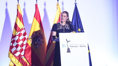 La princesa Leonor ha animado este miércoles a los jóvenes a pensar a largo plazo para mejorar la sociedad: "Pensemos en largo y miremos alto sin perder de vista la realidad, pero con esperanza y energía para seguir esforzándonos en mejorarla", ha señalado. Así se ha expresado la futura monarca durante su discurso en la entrega de los 15 Premios Fundación Princesa de Girona, celebrada en Lloret de Mar (Girona). A lo largo del discurso, se ha expresado en catalán y en castellano para detallar brevemente la historia de los seis galardonados.