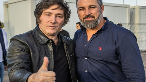 Milei no oculta su compadreo con Abascal y ha llegado a participar de actos del partido verde. Concretamente lo hizo en octubre de 2022, cuando fue invitado por la formación de extrema derecha española a su festival Viva22. "¡Viva la libertad!, ¡Viva España!, ¡Viva Vox! ¡Viva Santiago Abascal! ¡Vamos contra los zurdos!", fueron algunas de las proclamas que lanzó por aquel entonces, cuando su intención de voto se situaba en torno al 25%.