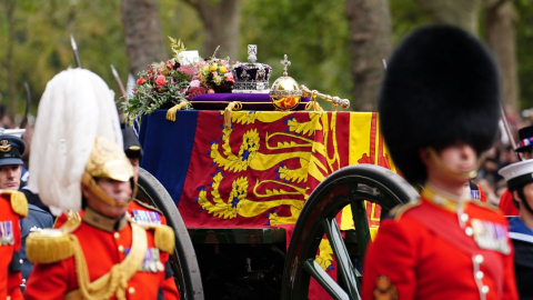 Antes de ello, a las 11.40 de la mañana, era Carlos III quien llegaba a la Abadía. Minutos después bajaba del coche oficial la reina consorte, Camilla, muy poco antes de que el féretro de la reina saliese del palacio de Westminster en un recorrido engalanado con el sonido de las gaitas, el paso de la guardia real, el empuje de los 142 soldados de la Royal Navy que flanquaban el carruaje en el que yacía el féretro y las 96 campanadas que se han escuchado desde el Big Ben en honor y referencia a la edad de la difunta.