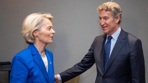 La presidenta de la Comisión Europea, Úrsula von der Leyen, sobrepasó todas sus funciones al apoyar abiertamente y en nombre de los Veintisiete la guerra ilegal desplegada por Estados Unidos (EEUU) e Israel contra Irán. La máxima mandataria comunitaria se posicionó del lado de aquellos que vulneran el derecho internacional y la caterva belicista española, encabezada por el Partido Popular (PP), salió rápidamente a defenderla. Apenas unas horas después, la alemana se ha desdicho, dejando una vez más a los de Alberto Núñez Feijóo solos en Europa.