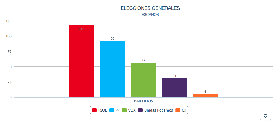 Respecto al reparto de escaños, la contundente victoria de Pedro Sánchez se traduciría en 117 escaños para los socialistas. A continuación, el PP crecería hasta los 92 y Vox se movería en una horquilla de 57-58 escaños.