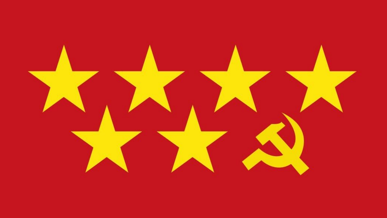 La charla comienza cuando Errejón propone “un retoque a la bandera de la Comunidad de Madrid”. Así, pasa una imagen de la bandera regional con un pequeño cambio: una de las estrellas es sustituida por la hoz y el martillo comunista. Además, el color blanco fue sustituido por el amarillo.