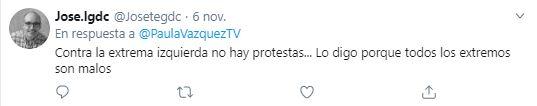Las reacciones de los internautas han sido de todo tipo, tanto a favor como en contra. Algunos ejemplos son: “Y la manifestación contra la extrema izquierda cuándo?”, “Contra la extrema izquierda no hay protestas… Lo digo porque todos los extremos son malos”.