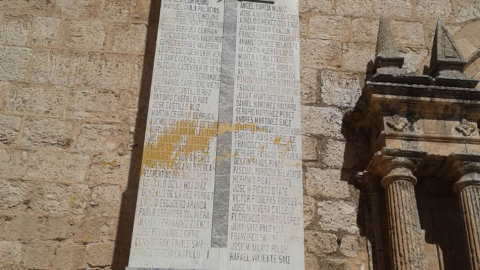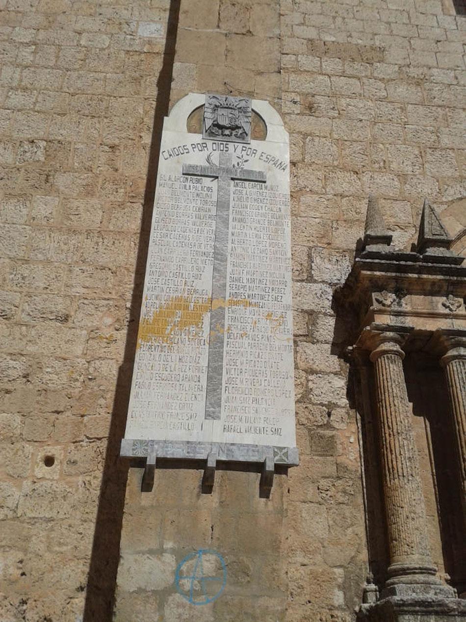 En su denuncia, los querellantes solicitan al juzgado de La Roda que obligara al alcalde y a la Iglesia albaceteña a eliminar la placa a los “caídos por Dios y por España”, así como el escudo inconstitucional del aguilucho, además del monolito que recuerda el paso por la localidad del cuerpo de José Antonio Primo de Rivera, portado por los falangistas en su onírico y surrealista recorrido entre Alicante y Madrid en 1936.