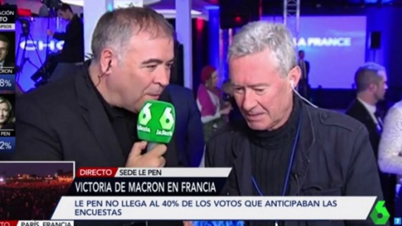 Este domingo Francia puso freno al avance de la extrema derecha eligiendo a Emmanuel Macron como presidente con el 65% frente al 35% cosechado por Marine Le Pen, del Frente Nacional. Todos los ojos estaban puestos en la segunda vuelta de las presidenciales galas puesto que podría suponer un punto de inflexión en la configuración de la Unión Europea tal y como la conocemos. En este sentido, La Sexta dedicó un programa especial a seguir las elecciones. Durante El Objetivo de Ana Pastor, Antonio Ferreras, haciendo las veces de enviado especial, entrevistó a Jorge Vestrynge, uno de los académicos de cabecera de Podemos, quien dejó unos titulares sobre el FN cuanto menos, llamativos.