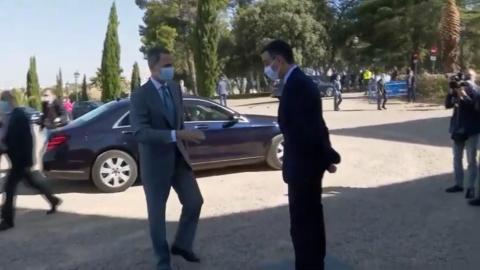 Felipe VI parece no terminar de acostumbrarse a la nueva normalidad y ha ofrecido su mano a un presidente del Gobierno que no se ha dejado llevar por la anécdota y no ha hecho indicios de querer estrechar su mano.