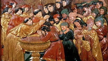 Entre correligionarios cristianos donde sólo imperaría el amor no se dudó en representar a los evangelistas apedreando al papa.