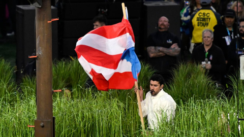 En paralelo, el arranque del show situó a Bad Bunny en un paisaje inspirado en campos de caña de azúcar, con una luz de atardecer casi cinematográfica y una galería de símbolos cotidianos: jíbaros con pava (el sombrero de paja tradicional), viejitos jugando dominó y hasta un puesto de piraguas (hielo raspado) que parecía más propio de una tarde en la isla que de la maquinaria perfecta de la NFL.