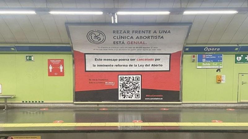 Este martes han aparecido en Madrid carteles antiabortistas con la frase: “Rezar ante una clínica abortista está genial. Este mensaje podría ser cancelado por la inminente reforma de la Ley del Aborto”. ¿Quién está detrás de esta iniciativa?