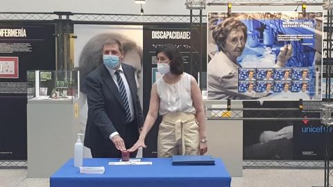 El acto en el que se ha dado a conocer la nueva estampa se ha desarrollado en el Hospital 12 de Octubre y ha contado con la participación del Presidente de Correos, Juan Manuel Serrano Quintana, la Directora Gerente del centro hospitalario, Carmen Martínez de Pancorbo González; el profesor Jesús Ávila De Grado, uno de los primeros discípulos que se formaron en el laboratorio de Margarita Salas; la hija de Margarita Salas, Lucía Viñuela Salas, y la Directora General de Investigación, Docencia y Documentación de la Consejería de Sanidad de la Comunidad de Madrid, Teresa Chavarría Jiménez.