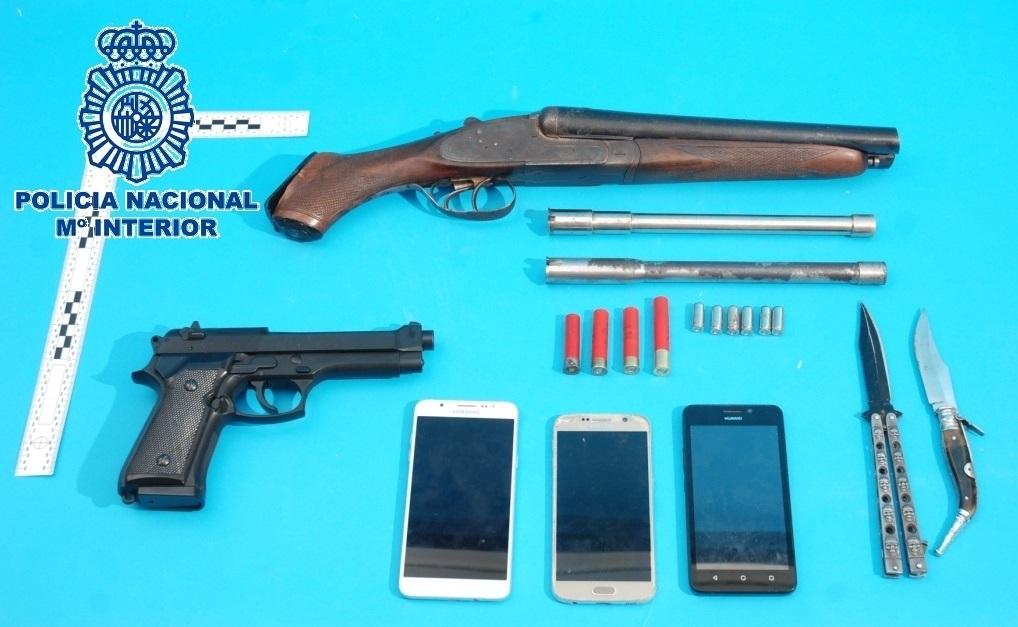 En el registro realizado se intervinieron a los investigados una escopeta de cañones modificados --recortados--, así como cartuchos de diversos calibres, una pistola simulada y armas blancas, siendo todo puesto a disposición de la autoridad judicial.