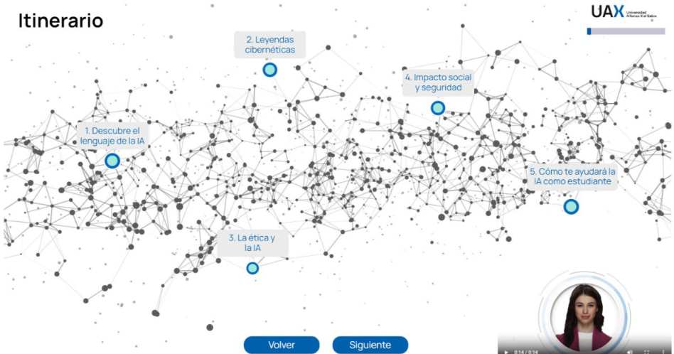 La guía ofrece un recorrido interactivo que permite a los estudiantes aprender conceptos clave sobre el uso de la IAG, como la creación de prompts para obtener resultados precisos, la identificación de alucinaciones en los sistemas de IA, y principios de ética al entender cómo se producen los sesgos y deepfakes. Además, aborda la importancia de la transparencia en su entrenamiento y uso, e incluye medidas de seguridad que deben considerarse al utilizar o analizar datos con IA Generativa.