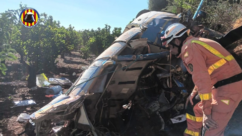 El helicóptero ha chocado contra una línea de alta tensión y ha caído en un huerto, hasta donde se han desplazado los servicios de emergencias. A su llegada, los bomberos han extraído a una persona atrapada en el interior de la aeronave, mientras que las otras dos ya se encontraban en el exterior.