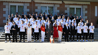 Felipe VI y Letizia, acompañados por sus dos hijas, Leonor y Sofía, ambas ataviadas con una camiseta de la 'Roja' con el número 10, y con la ministra de Educación, Formación Profesional y Deportes, Pilar Alegría, y el presidente del Consejo Superior de Deportes, José Manuel Rodríguez Uribes, han recibido a los internacionales a los que felicitaron por su victoria, aunque el monarca y su hija pequeña ya estuvieron presentes en la final e incluso Felipe fue el encargado de entregarles la copa de campeones.