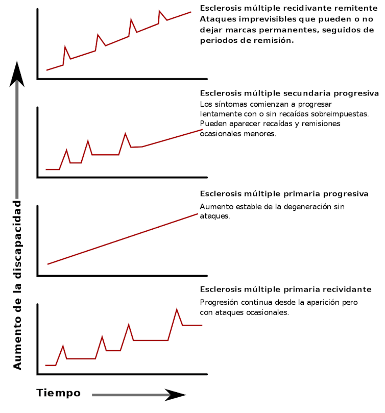 La mayoría de los pacientes con esclerosis múltiple presentan brotes, es decir, momentos en los que aparecen nuevos síntomas o empeoran algunos previos, de los que se recuperan total o parcialmente. Con el tiempo, muchos evolucionan hacia una forma denominada “secundariamente progresiva”, en la que el incremento de la discapacidad es continuo (sin brotes) y en general sin recuperaciones funcionales. Otro momento crucial que permanece como incógnita, ya que no se sabe ni cuándo ni cómo ocurrirá, ni si tendrá lugar o no.