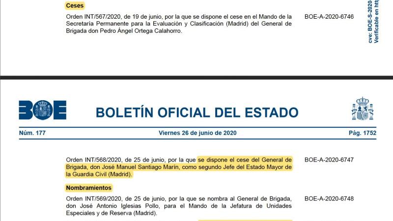 Santiago era segundo jefe del Estado Mayor de la Guardia Civil, antes de su ascenso como responsable máximo de este departamento, que depende del número dos del Instituto Armado, el Director Adjunto Operativo DAO. El BOE recoge hoy su cese y su ascenso.
