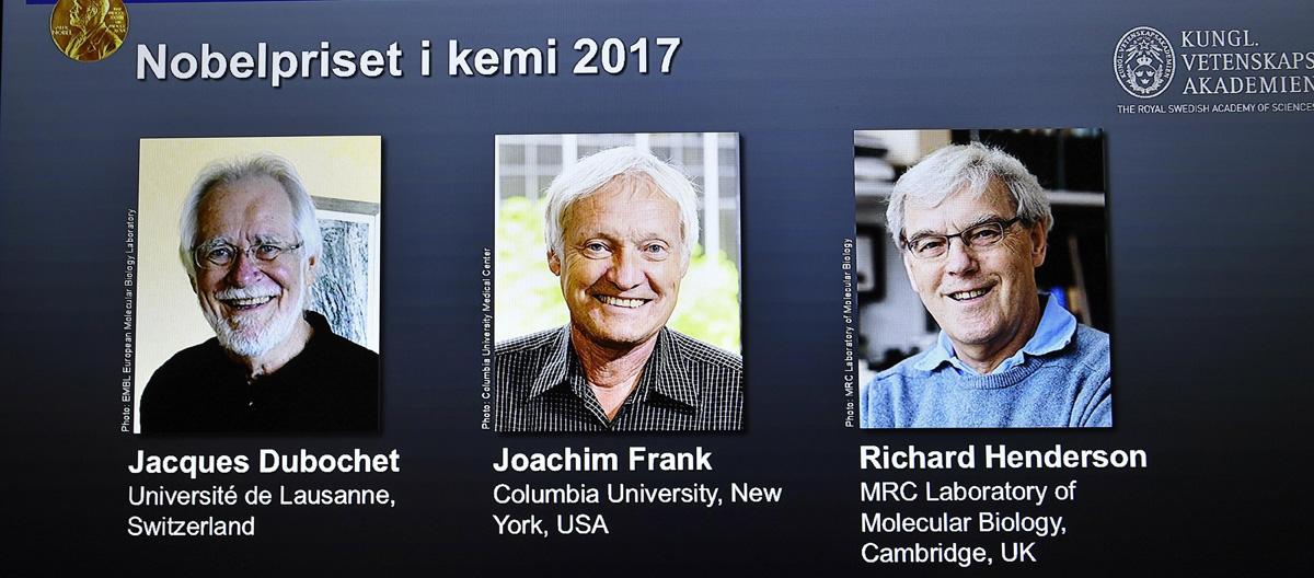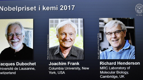 El suizo Jacques Dubochet, el germano-estadounidense Joachim Frank y el británico Richard Henderson fueron galardonados este miércoles con el Premio Nobel de Química por desarrollar la "criomicroscopía electrónica para la determinación estructural en alta resolución de biomoléculas en una solución", anunció esté miércoles la Real Academia Sueca de las Ciencias.
