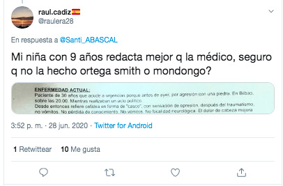 Tras la publicación del informe médico de De Meer, son muchos los que han mostrado sus dudas en torno a la veracidad del mismo. De hecho, en las respuestas al tuit de Abascal se cuentan las de numerosas personas que lo cuestionan.
