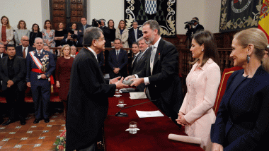 "Hoy reconocemos a un embajador de Cervantes y de la patria de Darío que, con usted, ha vuelto a casa, a esta casa que es la lengua de todos", ha dicho el monarca, acompañado en la solemne ceremonia de entrega por la reina Letizia; el presidente del Gobierno, Mariano Rajoy; la presidenta de la Comunidad de Madrid, Cristina Cifuentes; además del ministro Méndez de Vigo, y otras autoridades del mundo de la política, la educación y la cultura.