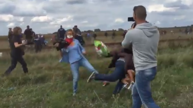 Petra Lászlo, la periodista húngara que entonces trabajaba en colaboración con la televisión local N1, cercana al partido de extrema derecha Jobbik, fue filmada en septiembre de 2015 en el momento que agredía a los refugiados.