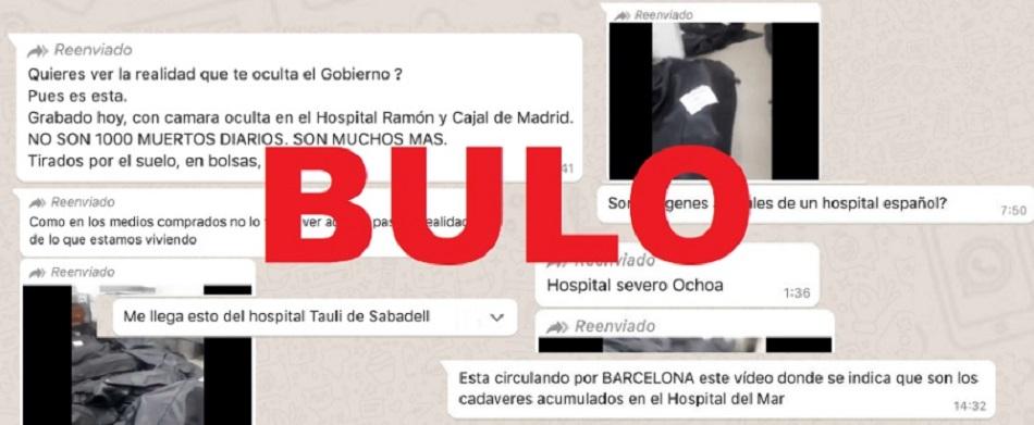 Las duras imágenes de la expansión del coronavirus en Ecuador, con cadáveres amontonados en un hospital, han valido a algunos para difundir en las redes sociales bulos en los que se se afirma que esos vídeos han sido grabados en centros hospitalarios españoles, como el Hospital Ramón y Cajal de Madrid o el Severo Ochoa, en Madrid, o el Tauli de Sabadell o el Hospital del Mar, en Barcelona.