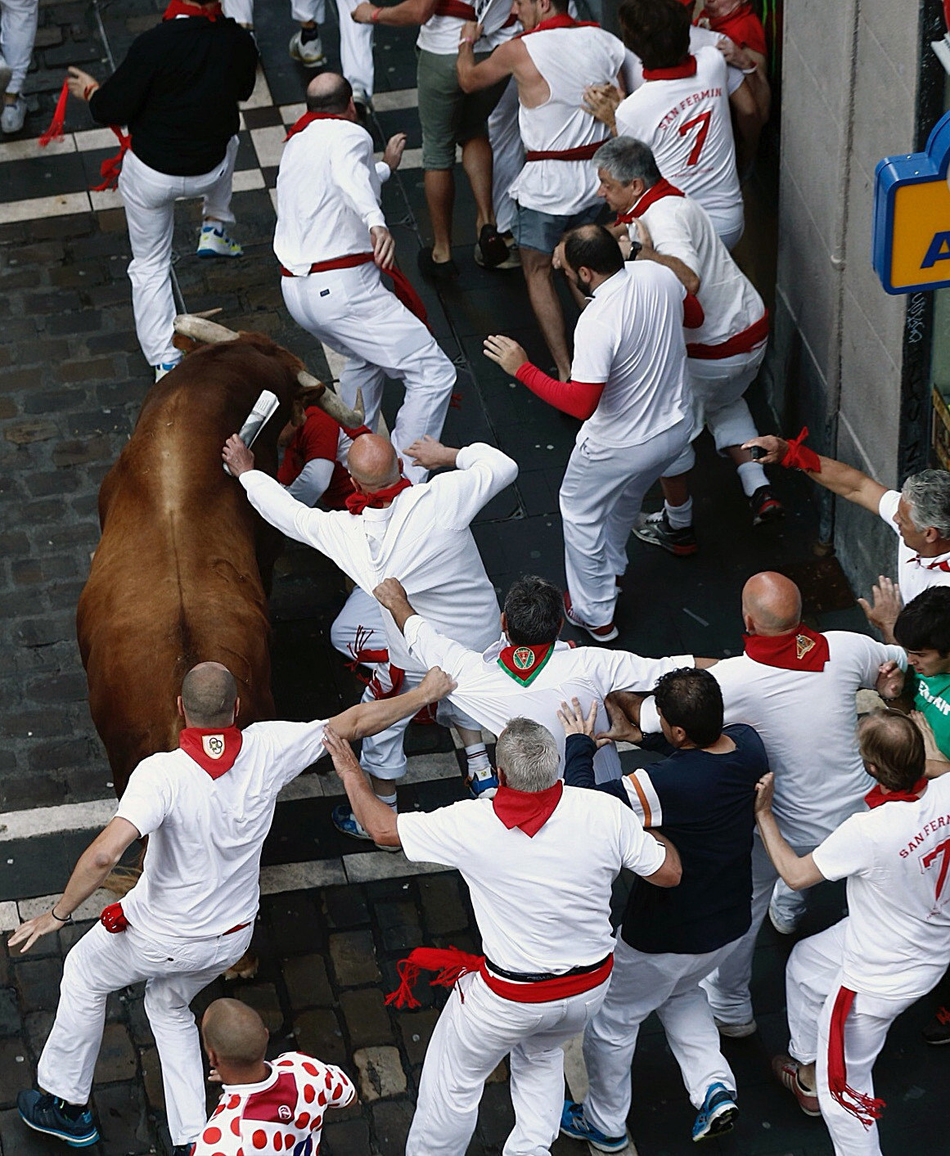 Cebada Gago no participaba en un encierro de San Fermín desde 2102. Fue el tercer encierro de las fiestas y tres mozos fueron corneados. Esta ganadería de Medina Sidonia, está consideradad como la más peligrosa y ha dejado en las 27 veces que ha participado en los encierros 46 corneados y 99 traumatismos.