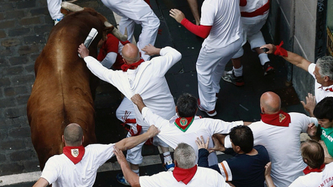 Los toros de la ganadería Cebada Gago han tardado casi 6 minutos en llegar a la plaza en el segundo encierro de San Fermín 2016 en el que al menos cinco corredores han resultado heridos por asta de toro. Los toros, que se han separado, han generado numersosas situaciones de peligro.