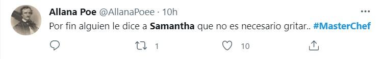 El momento ha sido aplaudido ampliamente en las redes que han celebrado que alguien le dijera a la chef que no hace falta gritar constantemente a los aspirantes para que le hagan caso. No es la primera vez que se puede ver al jurado fuera de sus casillas y exasperando a concursantes, invitados y audiencia a causa de sus gritos. Por ello, en Twitter comentarios como “Samantha gritando como cada semana” o “Gracias Laura por decirle a Samantha lo que todo el mundo piensa”, en referencia a sus bocinazos, se han podido leer en la red social.