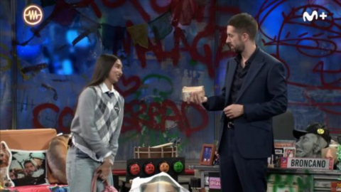 El humorista miraba entonces al palco, donde se encontraban los acompañantes de la cantante, para preguntarles si era verdaderamente cierto: "Pero, ¿está loca?". "¿Qué hago con esto? ¿Es parte del regalo también?", bromeaba David Broncano antes de despedirla.