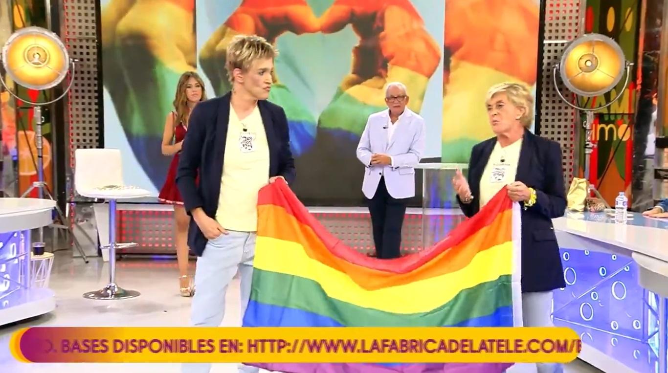 En un momento determinado, Chelo se colcaba en el centro del plató junto a una bandera LGTBI en señal de apoyo a los distintos colectivos que agrupa dicha bandera.