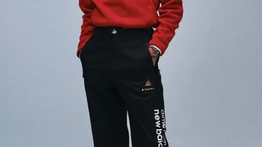 El corazón de la colección son las nuevas New Balance 991, presentadas en dos versiones bautizadas como Celery y Chocolate. La primera articula un equilibrio de capas a través de una base de malla gris con refuerzos de piel roja y paneles de ante en tonos oliva y marrón, creando un contraste limpio y controlado que respeta la arquitectura clásica del modelo. La segunda apuesta por una lectura más gráfica: parte de una base de piel blanca, añade detalles de cuero rojo, superposiciones de ante marrón oscuro y acentos en negro que aportan un anclaje visual más marcado, consolidando una silueta potente que encaja con la dirección creativa de la colaboración.