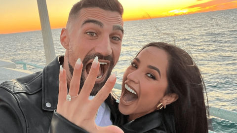 Compartieron dos fotos profesionales, así como una selfie que mostraba el brillante anillo de compromiso de Becky .