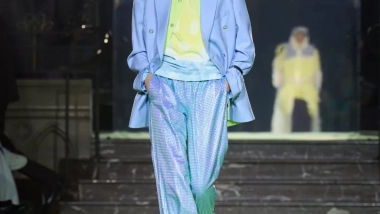 En la pasarela, Casablanca presentó un vestuario que reflejaba la diversidad de quienes habitan la pista de baile: pantalones cargo en amarillo ácido, chaquetas satinadas en tonos mandarina, faldas y vestidos cubiertos de lentejuelas teñidas a mano en azul, verde y rosa. También hubo pantalones de crochet plateado, minifaldas con efecto mojado y sudaderas rosas de textura difusa, fusionando lo deportivo, lo urbano y lo lúdico.