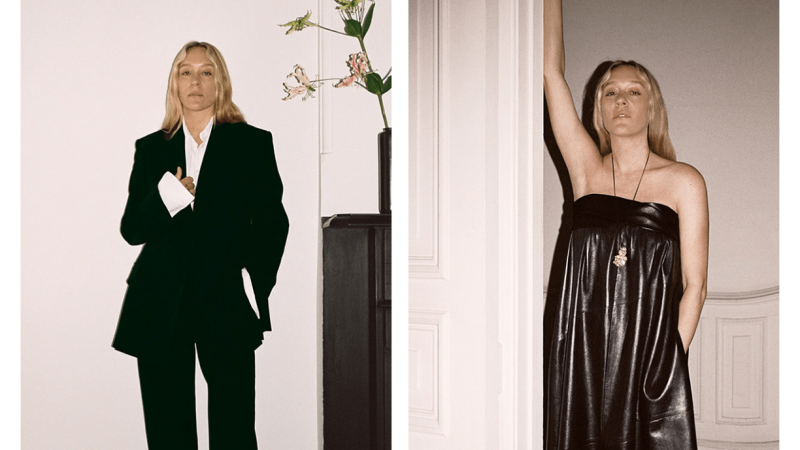 La campaña visual muestra a Chloë Sevigny vistiendo las características prendas de cuero de Proenza Schouler, incluyendo una chaqueta de motociclista que combina rebeldía con elegancia, gracias a los ribetes de piel rizada. Las imágenes también la presentan en un abrigo de pelo largo, listo para enfrentar los días invernales. Con las hojas cayendo en el fondo, Sevigny posa con confianza en un atuendo completamente blanco, añadiendo un toque de pureza y sofisticación a la campaña.