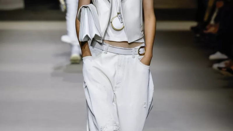 El escenario, el Muelle 36 transformado en una ciudad al amanecer, simbolizaba el inicio de un nuevo día. Bajo esa atmósfera, Vevers presentó un universo donde el grunge de los 90 y la espontaneidad de los 70 convivieron con piezas cargadas de optimismo. Vestidos transparentes con corazones, estrellas y globos aportaron un aire lúdico, mientras chaquetas de cuero desgastado, vaqueros anchos y camisas con imágenes de ciudades icónicas como Seattle, Detroit o Santa Cruz reforzaban la esencia urbana de la marca.
